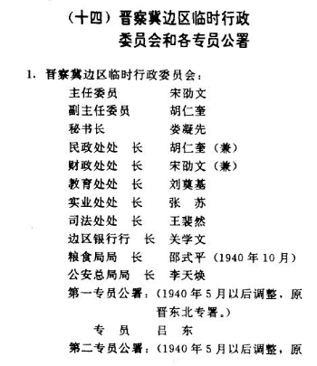 晋察冀边区临时行政委员会主要下设机构及负责同志。选自抗战文献数据平台所录《中国共产党组织史资料汇编——领导机构沿革和成员名录(增订本·从一大至十四大)》。