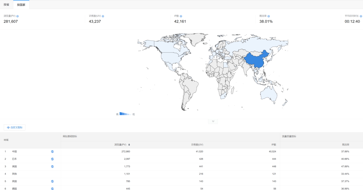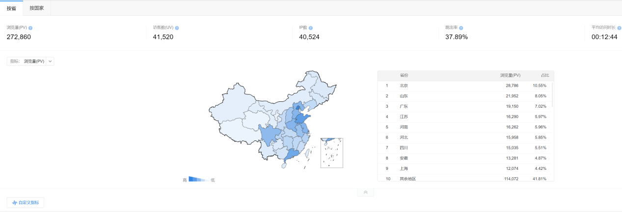在地域分布上,国内访客主要分布在北京、山东、广东、江苏、河南、河北、四川、安徽、上海等高等院校及科研院所集中的省市,国外访客主要来自日本、美国、英国、德国等国家,具体情况如下图所示: